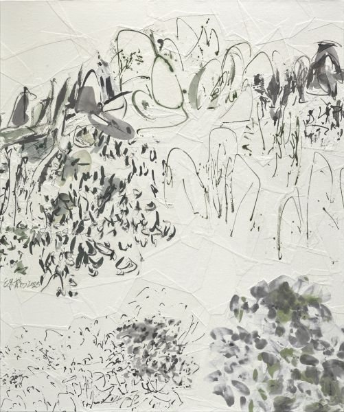 墨、炭筆、礦物顏料、棉紙拼貼於紙板